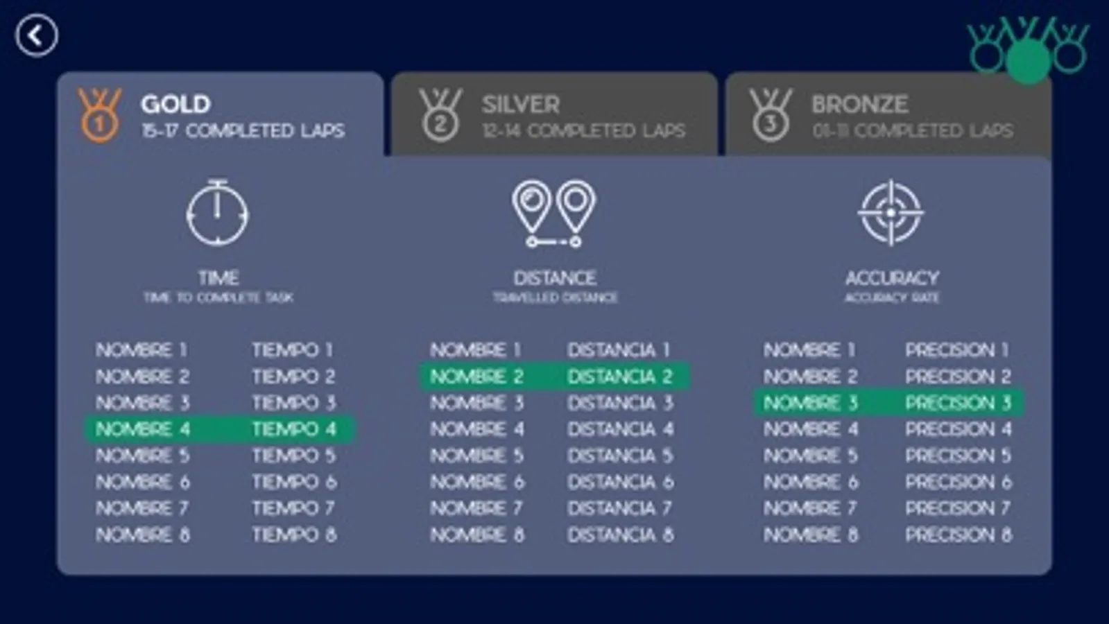 There are abstract exercises where users face the challenge of "resolving a 3D situation, guided by a bidimentional image". At the same time, their performance is assessed by means of pre-defined variables. This assessment is stored so that users can keep track of their progress and promote additional practice with gaming strategies.