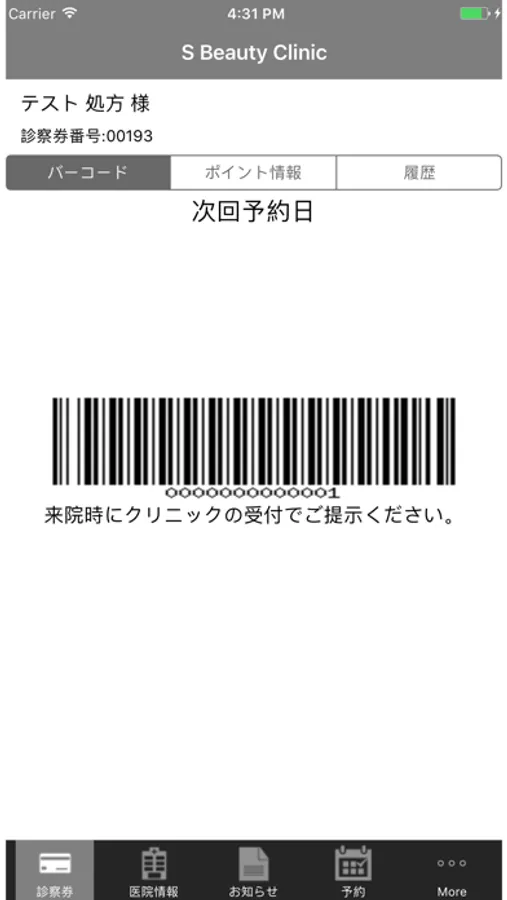 S Beauty Clinicの電子診察券です。