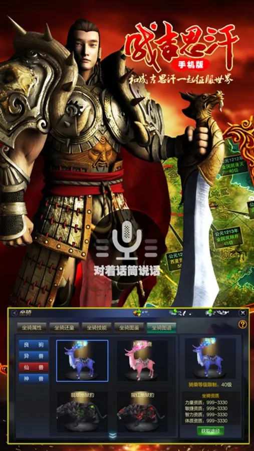 高度还原蒙古族彪悍的战骑历史,激动人心的冲锋陷阵大场面。数百种铁骑妖兽伴你纵横天下,出生入死攻城略地,做乱世英雄,搏江山美人。