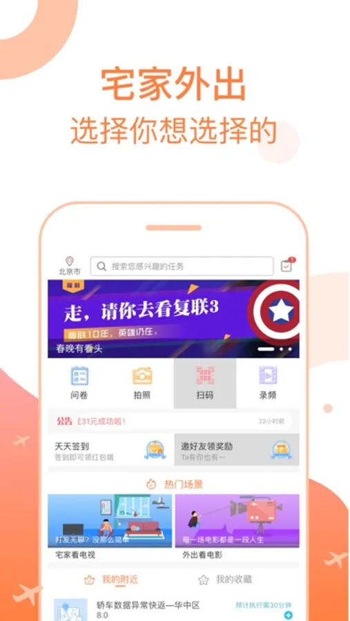 任务推荐:基于地理信息,为您推荐身边的赚钱任务;