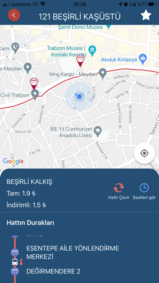 -Hattın gidiş ve dönüş yönüne ait olan duraklar harita üzerinde veya liste olarak görüntülenebilir.