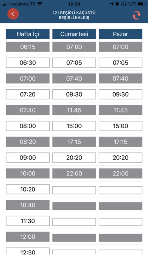 -Hatların gidiş ve dönüş yönlerine ait sefer saatleri görüntülenebilir.