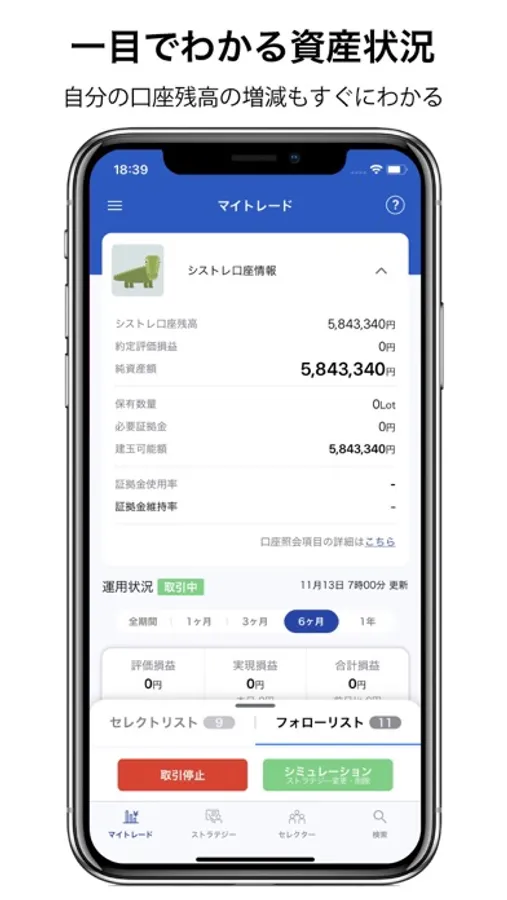 いつでもどこでも、システムトレードの取引を可能にする「みんなのシストレ」専用アプリです。