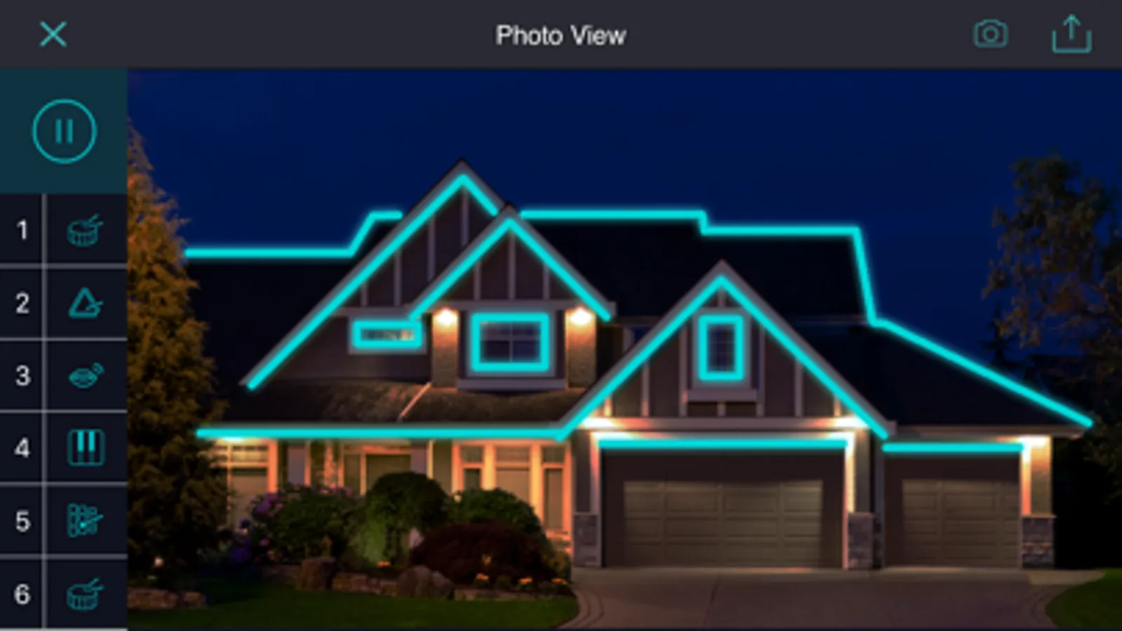When downloaded, the application comes with one ready-to-play music light show and 18 songs. Each preloaded track comes with 6 pre-edited light channels. You can either use the default music light show or create your own light display.