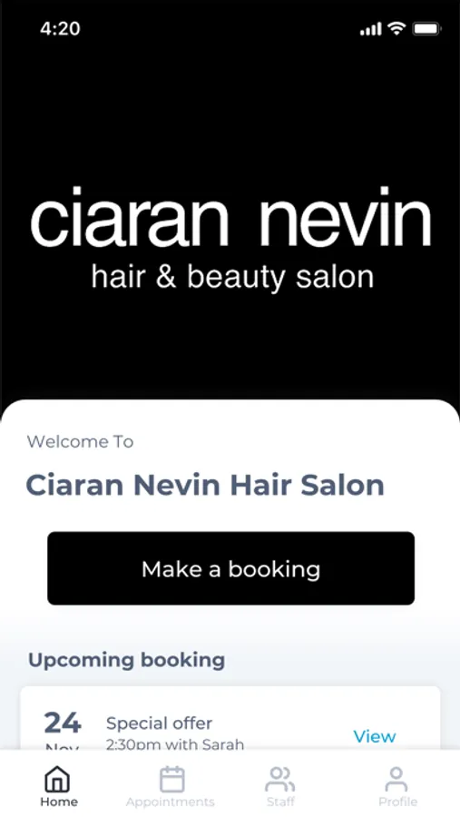 The Ciaran Nevin Hair Salon app makes booking your appointments and managing your loyalty points even easier. You're just a few taps away from feeling good and looking great!