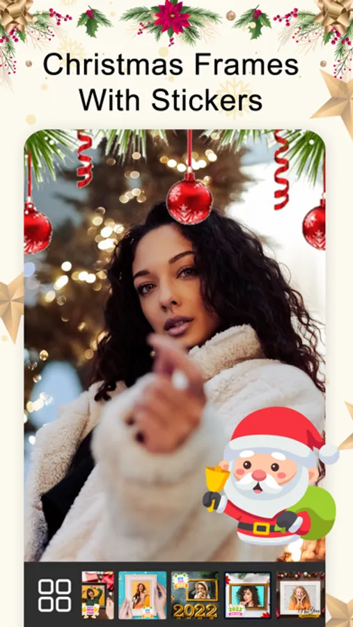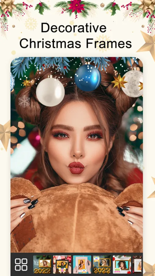 - Choose from fifteen Christmas frames in different shapes and colors and try them all out!