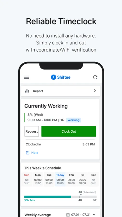 Employees can record their attendance through GPS or WiFi verification with their Shiftee mobile apps.