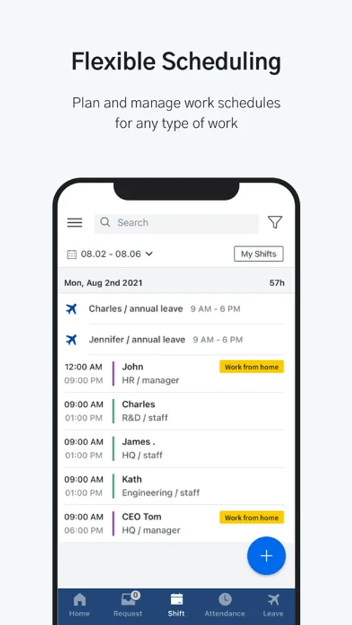 With real-time synchronization of work and leave schedules, both managers and employees have access to the latest schedules at all times.