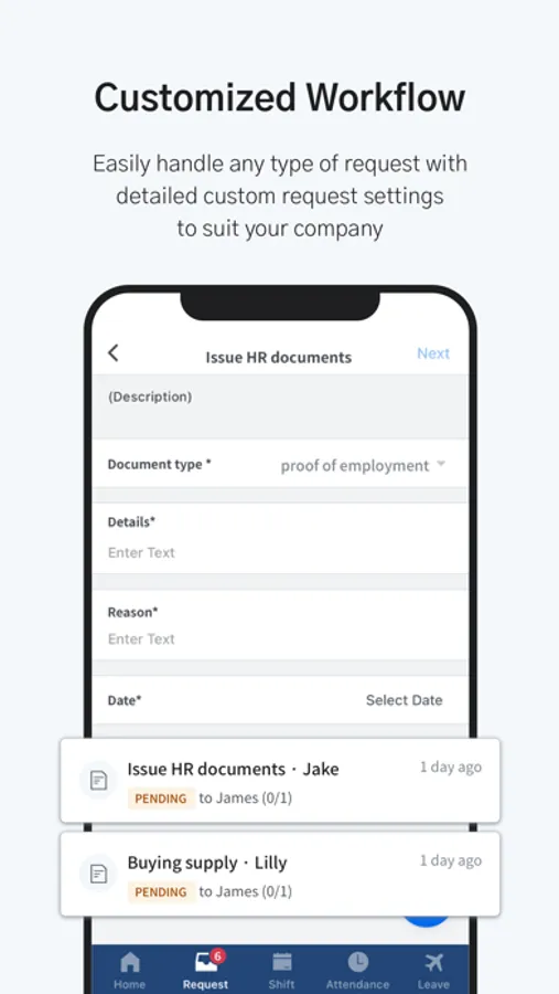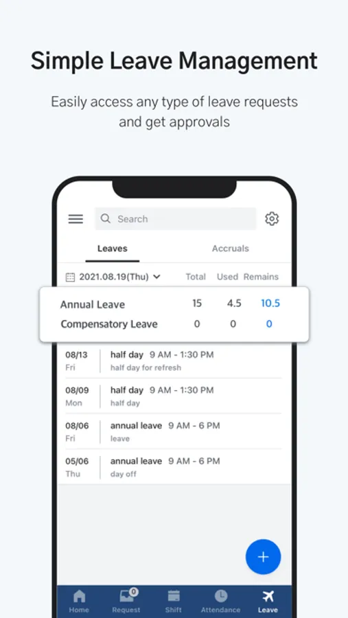 Make leave requests on mobile and view past leaves easily anytime anywhere.