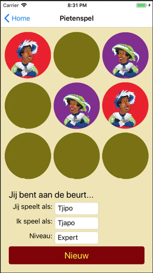 * Het Pietenspel (wat vreselijk veel lijkt op Boter-Kaas-Eieren) met Tjip, Tjapo, Trubbel en Fluitje