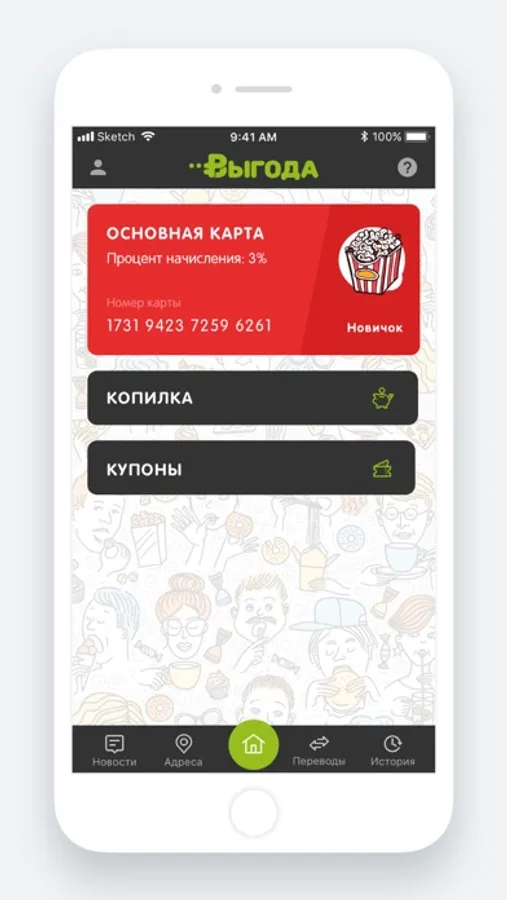 «Новичок» – базовый уровень при установке приложения, на карту лояльности возвращается 3% от суммы покупки.