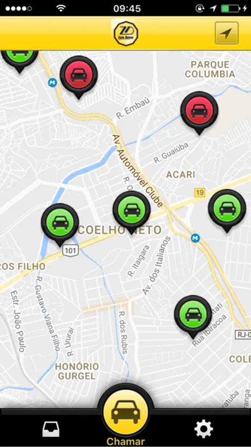 Você ainda consegue ver todos os carros perto da sua localização com a informação de ocupado ou livre dando ao nosso cliente uma visão completa da nossa rede de serviço.