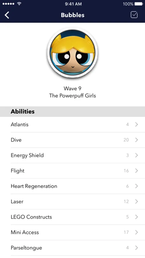 Vortech gives you a full reference of every LEGO Dimensions character and every ability (including waves 1-9 and Limited Edition polybags). You can tap minifigures to see which abilities they have and tap abilities to see which minifigures have them. Each minifig can be added to your collection so you can see at a glance if you have a needed ability.