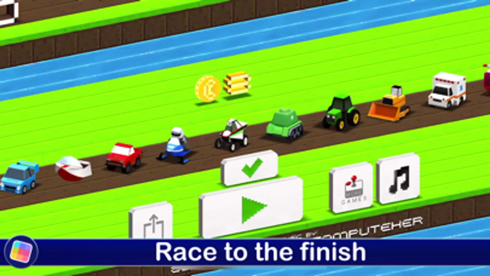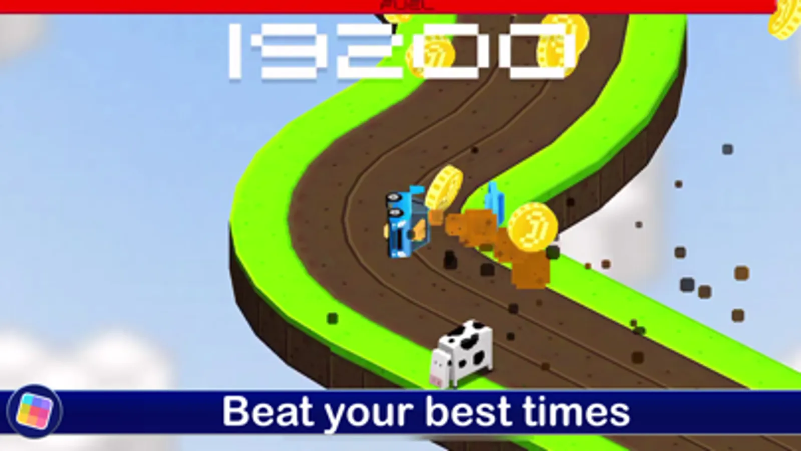 In most racing games, you race down tracks, tap to change lanes and avoid obstacles. But in Cubed Rally World, you won’t just be driving cars, trucks, boats, planes, and other vehicles … you’ll also race cows, UFOs and other weird surprises! Fly down a city street as a taxi, then “drive” a cow through a stampede. Each new “vehicle” unlocks a new track, with a totally new look and feel — and a chance to race even further.