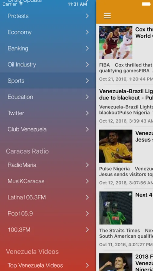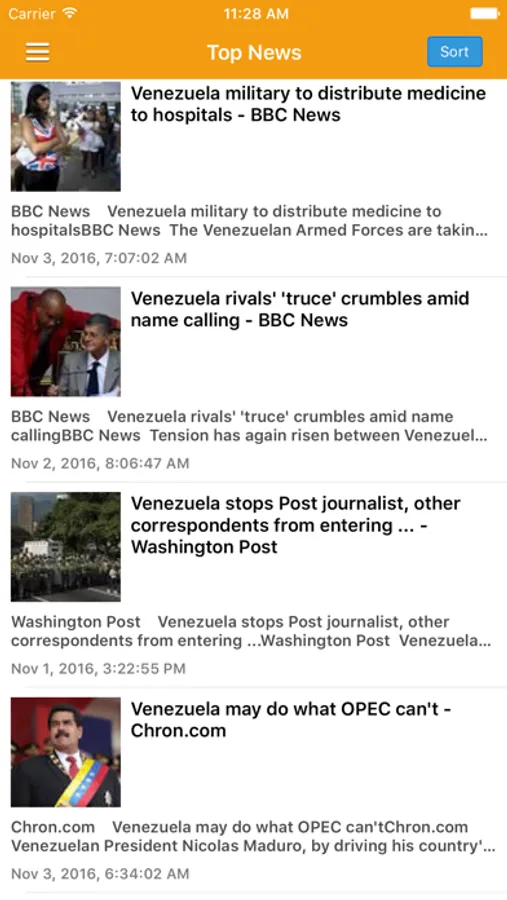 Latest breaking Venezuela News in English Today at your fingertips, with notifications support! Also get updates on the Venezuela Crisis, Protests, the country's economy, oil industry, sports news, top Venezuelan celebrities and more. Plus, listen to live streaming Caracas radio stations with music and talk. Individual news sections dedicated to top cities Caracas, Maracaibo, Valencia, Barquismieto, Ciudad Guayana and others will keep you informed about local happenings there. There is also a Venezuela videos section to keep you up to date and entertained.