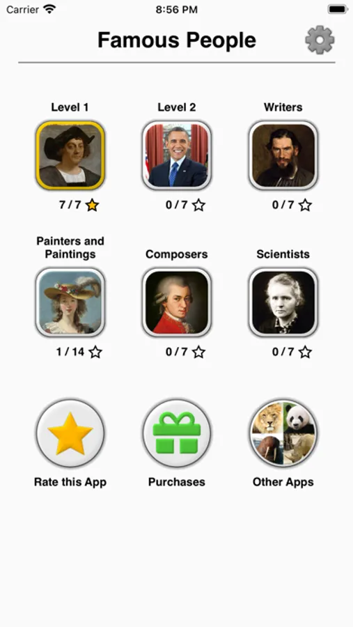 There are the 476 most recognizable persons from world history in this app: kings and queens, politicians and musicians, actors and film directors. Can you guess whose portraits are shown and collect all stars in all levels?