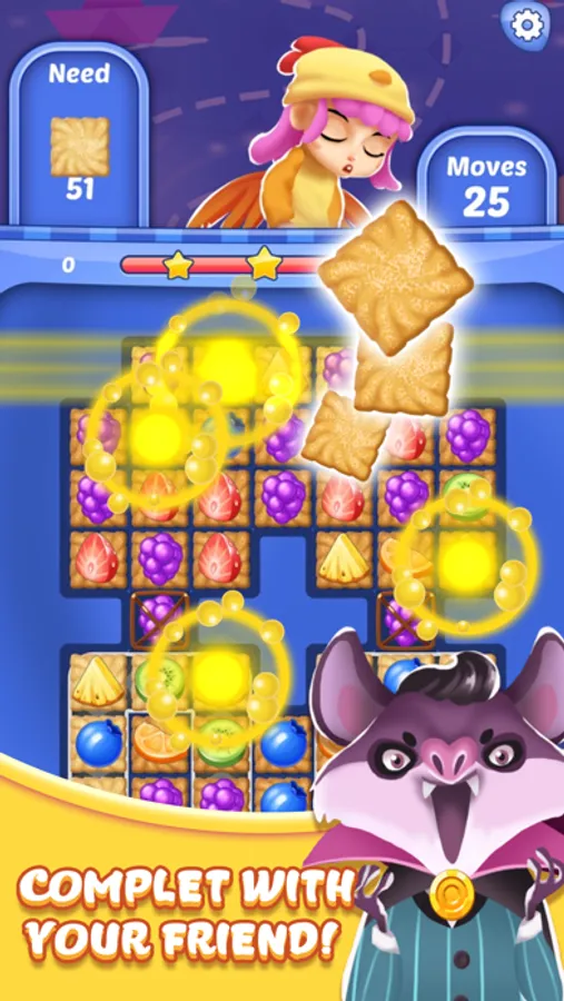 Crack all the cookies: crack the cookies by making match above them. Remove all the cookies to pass the level.