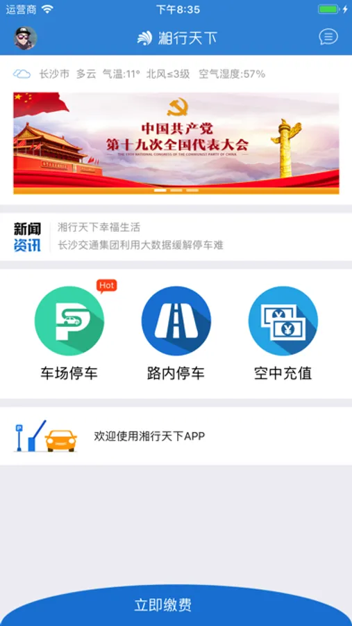 “湘行天下”APP是由长沙市交通集团为长沙市民交通出行倾力打造的一款智慧停车应用软件客户端,依托覆盖广泛的停车场实时数据,为广大车主提供停车场车位动态信息查询、导航、支付等服务,未来将与公交、地铁等公共交通支付系统实现对接,真正实现交通出行一卡通。