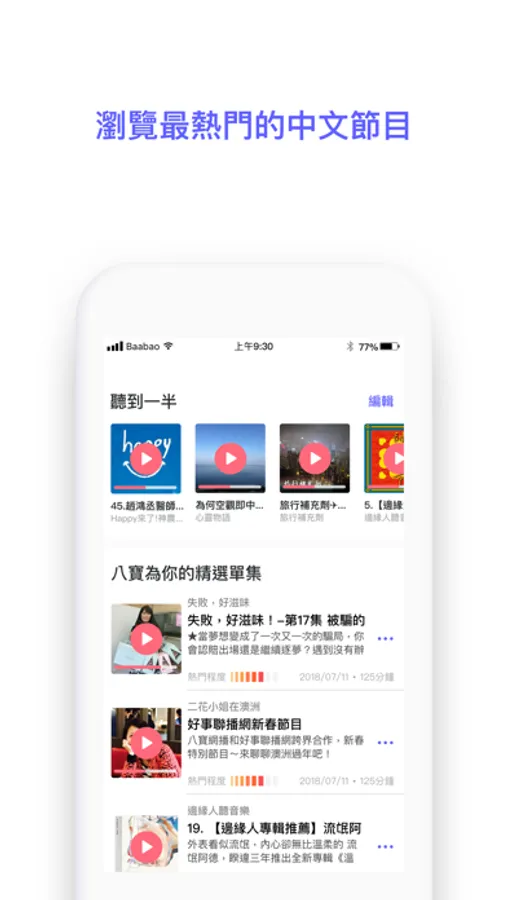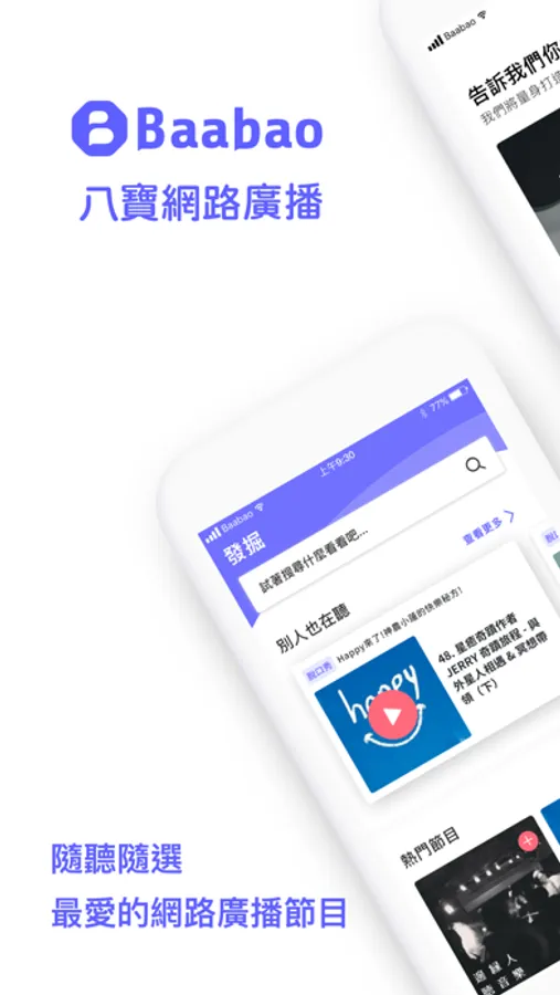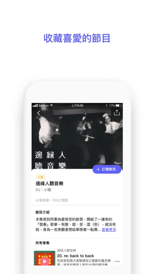 八寶讓您不怕錯過喜歡的節目,隨時隨地掌握最熱門的網路話題,八寶提供使用者訂閱、收藏與分享好聽的節目給好友。