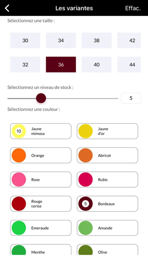 - définir plusieurs variantes pour un produit (dépendant sur la taille et la couleur)