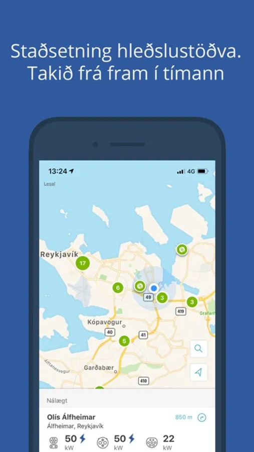 Finndu Ísorku stöðvar auðveldlega Ísorku appinu