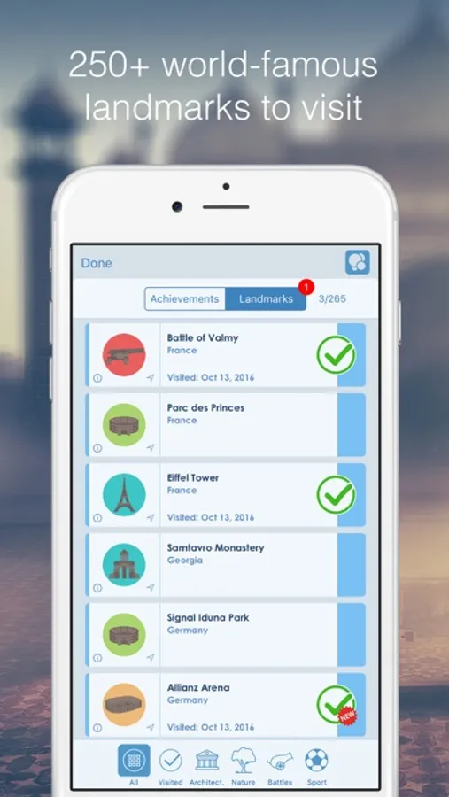 - When you visit some of the world's most famous landmarks, you'll score bonus points, and keep a record of when you were there for posterity.
