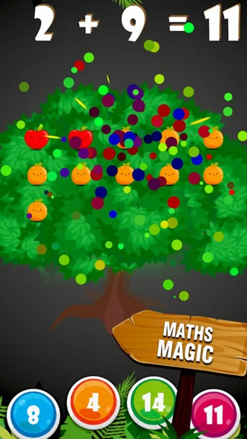* Addition: You see 2+2=? On the screen and below apple with answer. Count the apple and select the number 2+2=4. Hurry you did it.