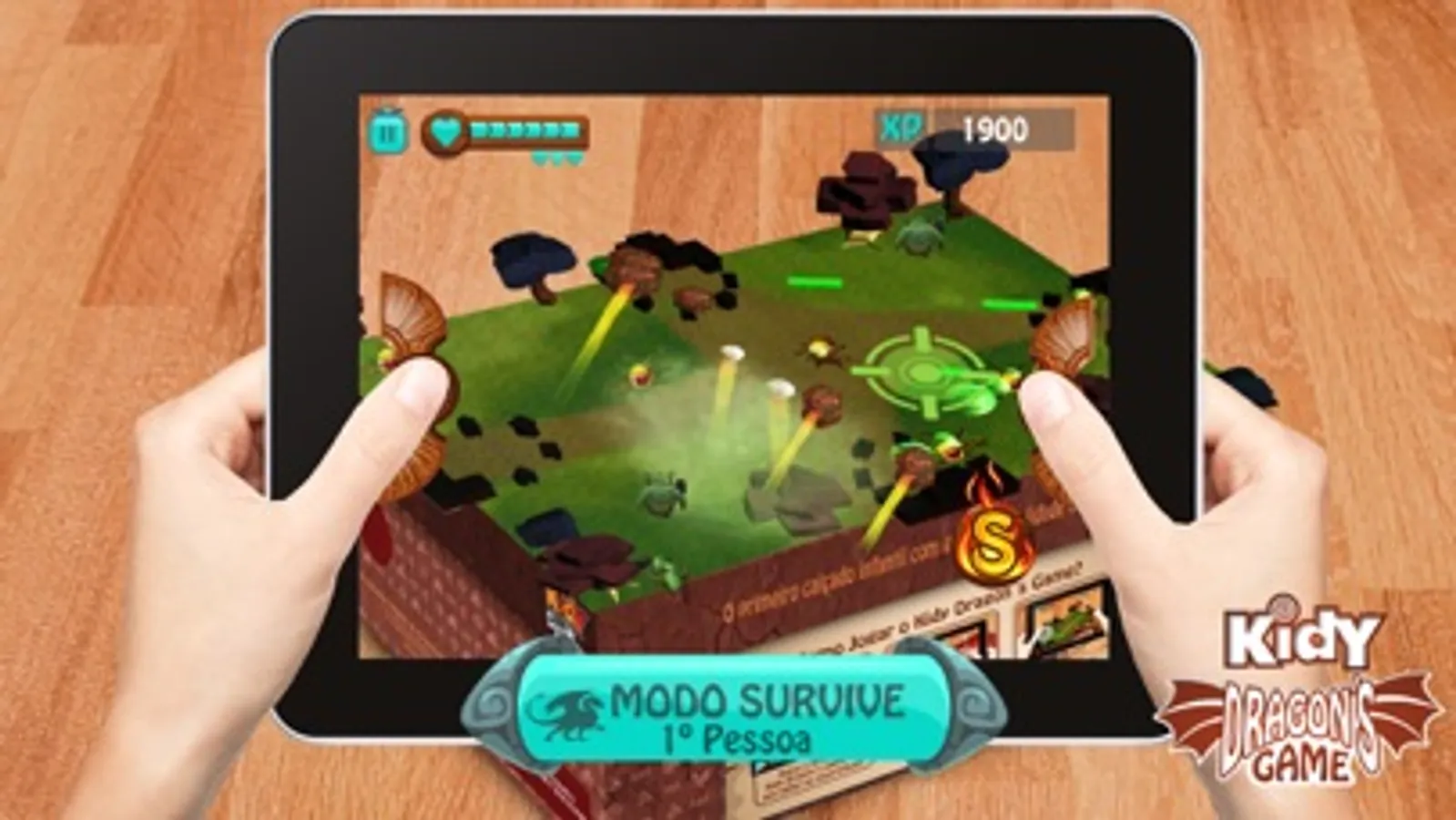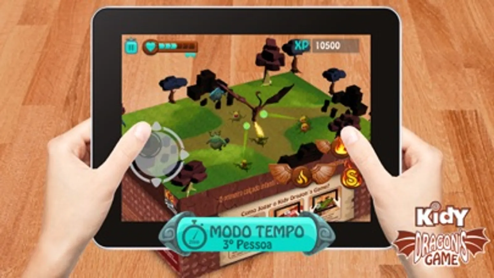 Para jogar é necessário apontar o seu tablet smartphone para o seu Dragon’s Card que é a parte superior (tampa) da embalagem do Tênis Kidy Dragon’s Game.