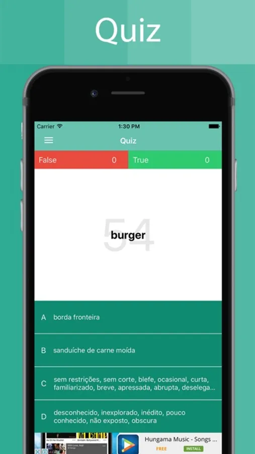 This Portuguese Dictionary Contains Quiz too. you can test you Portuguese skills using this multiple choice quiz and you can improve your Portuguese.