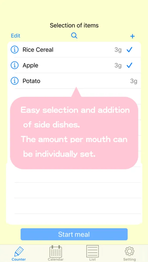 "Baby food counter" is an application that can record from the early to the late stage of baby food.