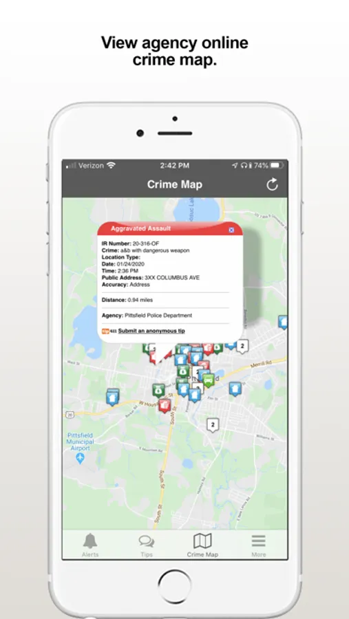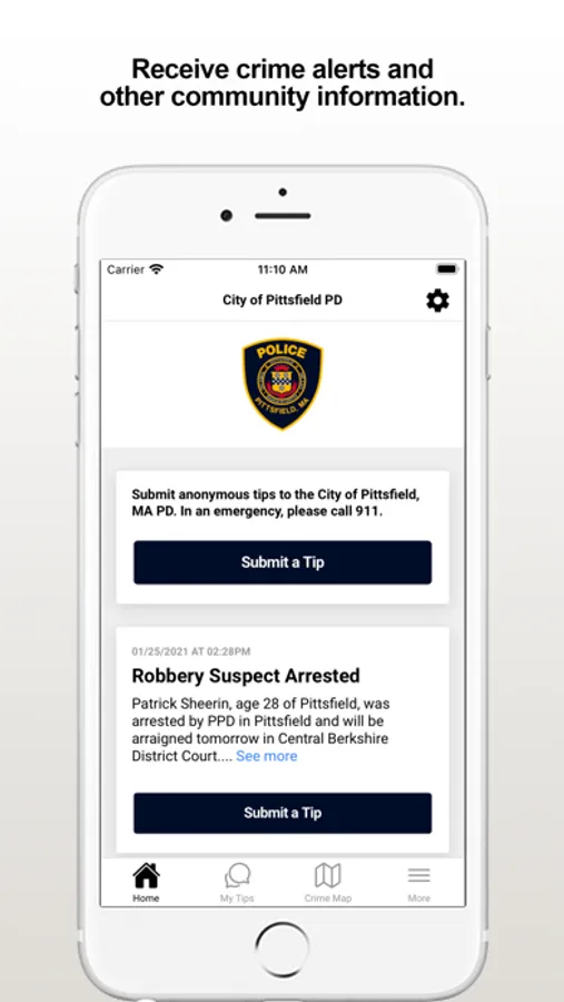 The Pittsfield PD app provides the community the ability to submit anonymous tips to Pittsfield, MA Police Department. The app also displays agency crime alerts, online crime map, and other organization web and social media content.