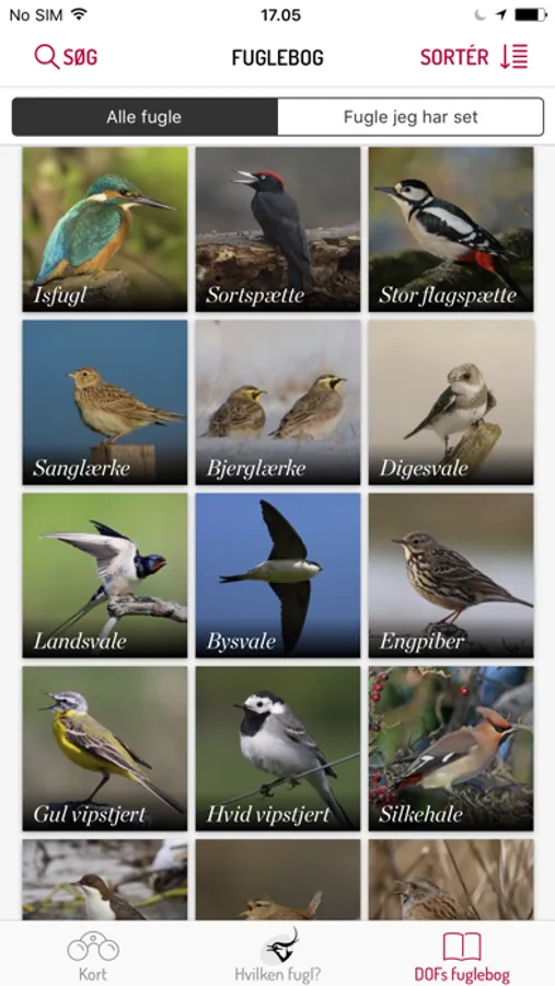 Appen giver dig også en liste over de mest almindelige arter, vi har i Danmark. Her kan du se billeder, høre stemmer og læse om fuglenes biologi. I appen kan du også krydse en fugleart af, når du har set eller hørt den. På den måde kan du holde styr på de fugle, du har set.
