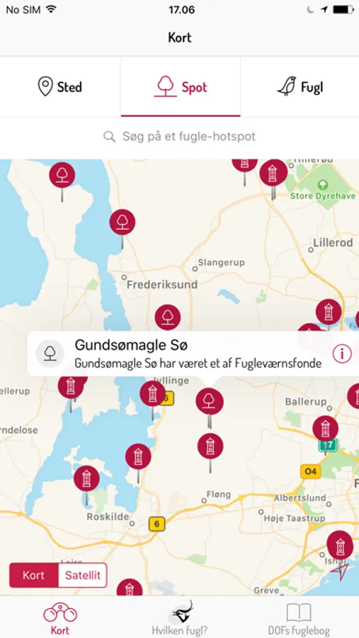 I appens kortfunktion, kan du undersøge, hvilke fugleområder, der findes i nærheden af, hvor du befinder dig. Det kan f.eks. være en sø, en skov eller noget tredje. På kortet findes også en oversigt over Danmarks fugletårne, hvor du kan opleve mange forskellige fugle. Søg også på en enkelt fugleart i kortet, og få vist de steder, hvor den ses mest almindeligt. Vil du ikke gerne vide, om man kan se havørne i nærheden af dig?