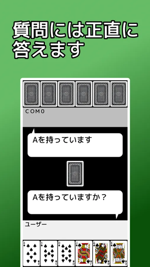 The number of players is 2 and 13 cards from A to K are used. It is a game in which 6 cards are dealt and guess what the remaining 1 card that was not dealt is. Players take turns either asking questions or answering.