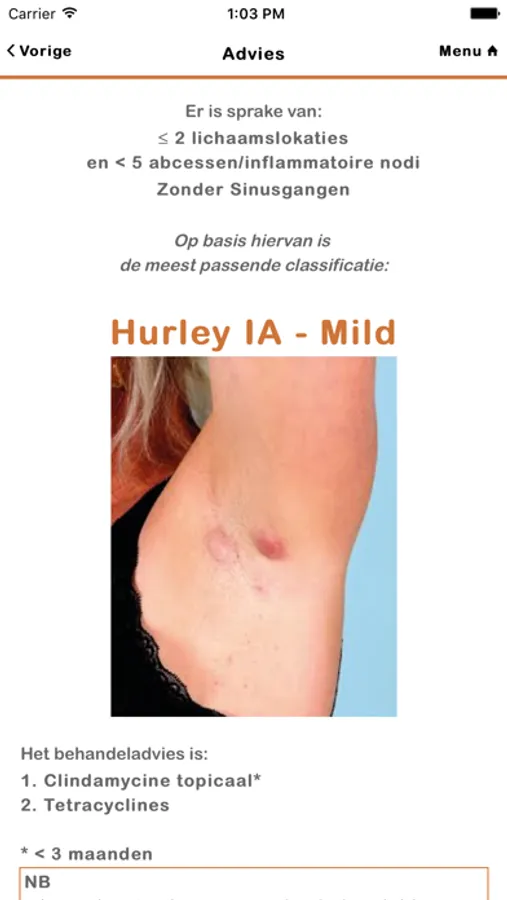 Om deze redenen heeft de werkgroep HS van de NVDV recent nuanceringen aangebracht in de ‘klassieke Hurley classificatie’. Door de nuances biedt deze ‘verfijnde Hurley classificatie’ de mogelijkheid om de verschillende fenotypes van HS nauwkeurigte karakteriseren. Daarnaast heeft de werkgroep aan de hand van de ‘verfijnde Hurley classificatie’ een behandelalgoritme ontwikkeld op basis van recente richtlijnen. De handige app biedt de mogelijkheid de ‘verfijnde Hurley classificatie’ met het bijbehorende behandelalgoritme in de dagelijkse praktijk toe te passen.
