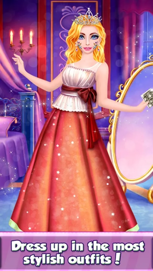 Princess Emma has reached a magic kingdom while she was following a rabbit hole. So let's join her on a wonderful journey and enjoy tons of different makeover activities. First of clean her face and wash the hair with shampoo and apply conditioner for a silky smooth hair. Then visit the spa treatment to make her skin glow by removing pimples and dark circle from her face. Next, select the best makeup for her like an eye shadow, mascara, eye lenses, eyebrow, blush, lipstick, eye shadow, crown, earrings and much more. When her look is all set, it's time to select the amazing dress up for her like a dress, jewelry, cool accessories, footwear, bags and much more. At the end, select your favorite background, partner and click a cool picture.