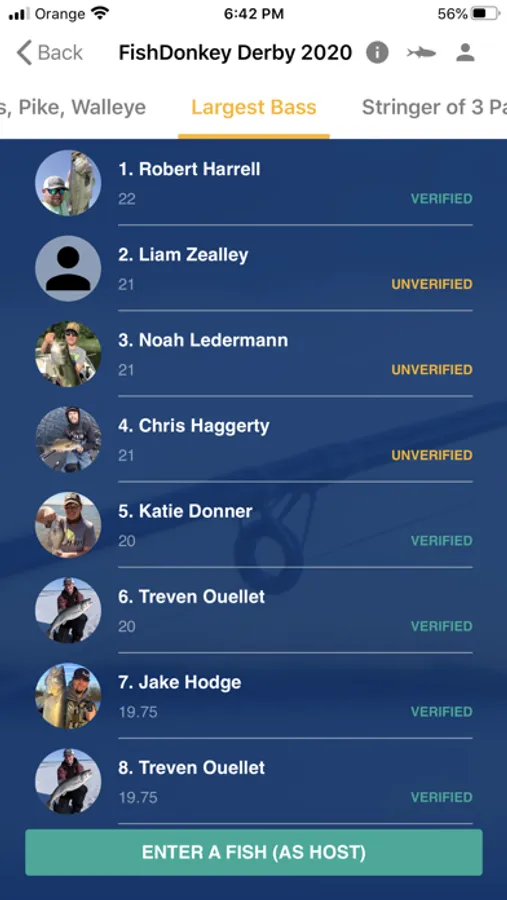 The FishDonkey app has built in options to help you create and run an automated tournament just the way you want. Create a variety of tournament options such as biggest fish, largest stringer of fish, grand slam, multispecies tournaments, wildcard, or custom names. You can run a tournament anywhere. Specify any length of time, an hour, a month… easily define and manage the start and end dates. Track daily or weekly winners.