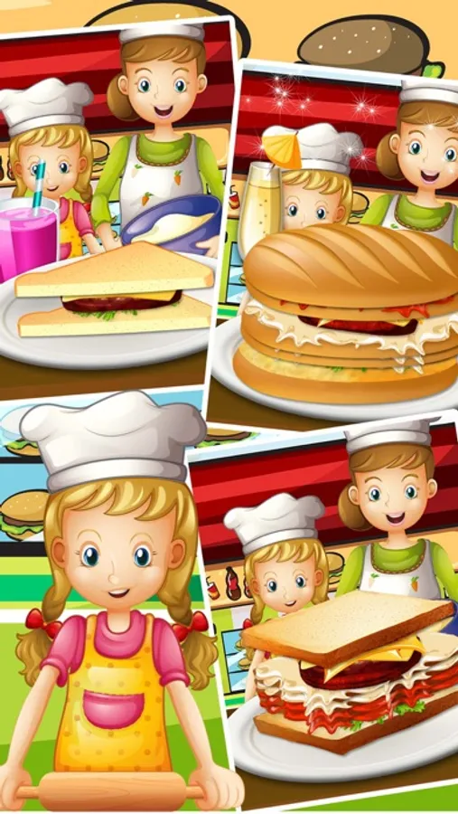 Everyone craves for Sandwiches! Play this game and cook the most amazing and exciting Sandwiches with the best toppings and flavours and toss it into your master delighting food and serve it with add-ons like fries ,potatoes, salads and sauces!!