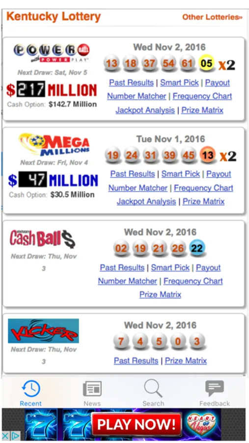 - Search past lottery results and specific dates