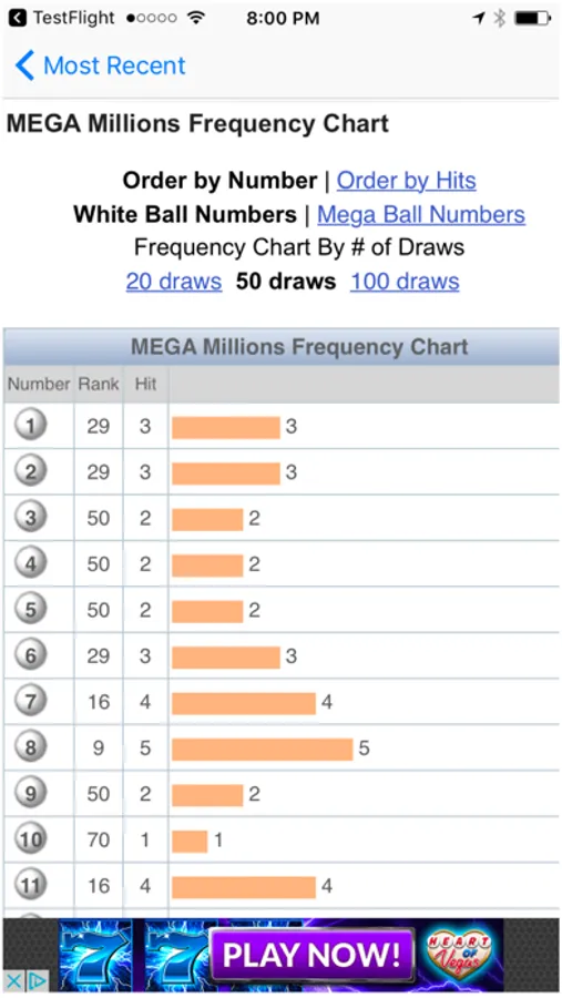 - Lottery game statistics, including hot and cold numbers and frequency of numbers.
