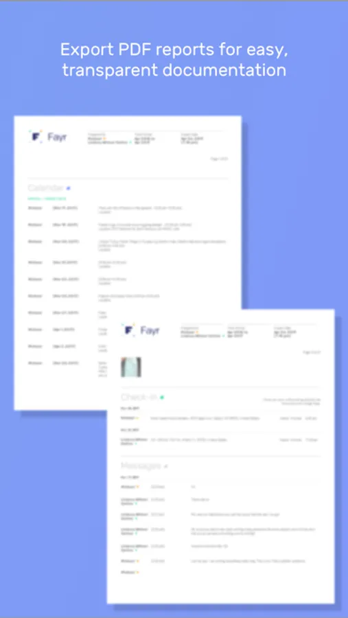 Fayr is the premier app for tracking co-parenting expenses, parenting time, locations and communication. Export court-admissible reports and save tens of thousands of dollars in mediation, court motions and lost productivity.