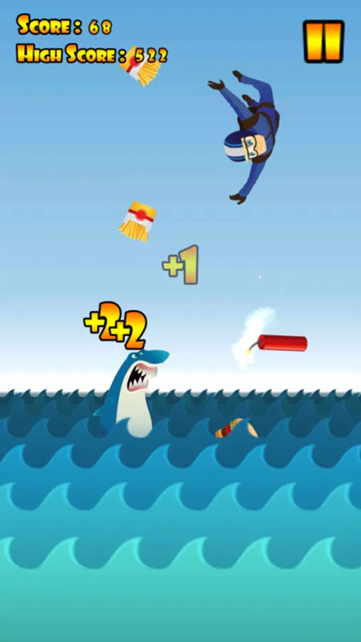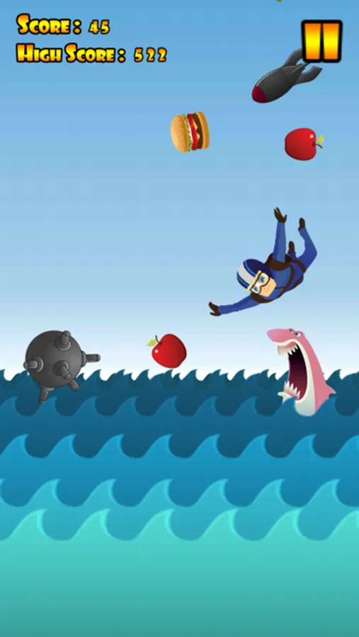 Simple yet challenging game. Play as Chomp Chomp the Shark and help him eat as much food as possible falling from the sky! But avoid the bombs, they won't taste good! Very simple controls, just tap to switch Chomp Chomp's direction! Play as Chomp Chomp, or Chompette! Incredible musical score that changes as you play!