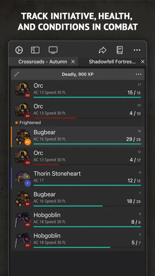 Encounter+ (EncounterPlus) VTT is a powerful virtual tabletop app designed to help Dungeon Masters to run D&D 5E combat encounters more easily. You can track initiative, health, and conditions for various monsters and players and position them as tokens on the map.
