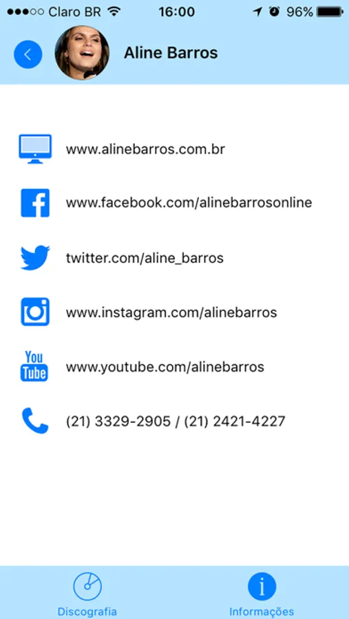 Discografia, músicas e tudo sobre os melhores cantores, cantoras e bandas, como site, redes sociais e muito mais.