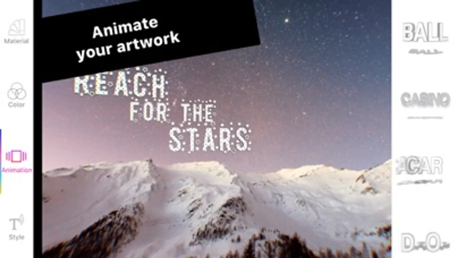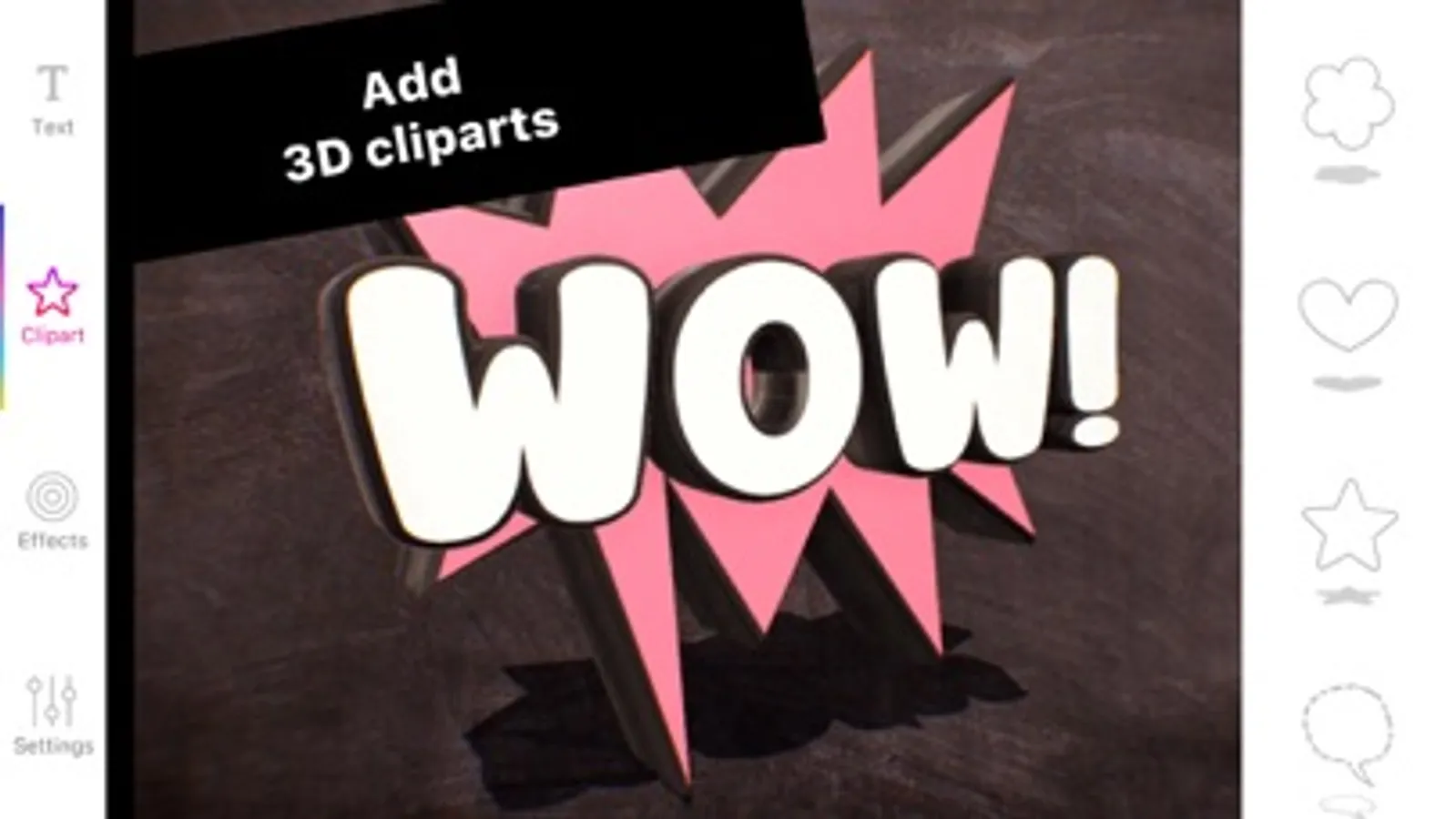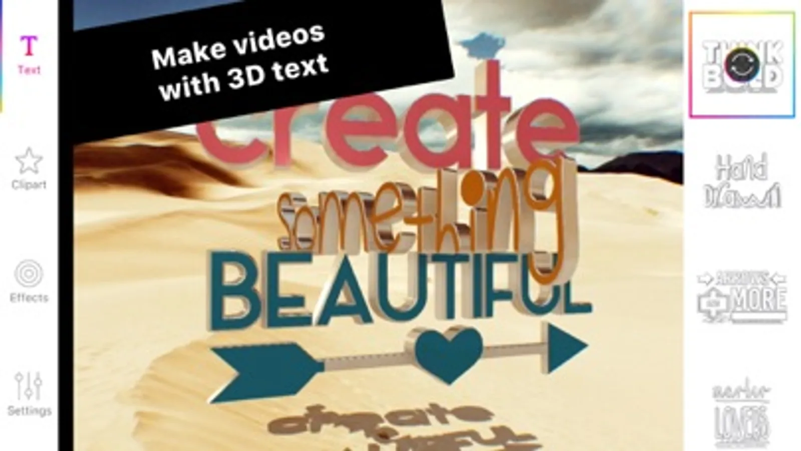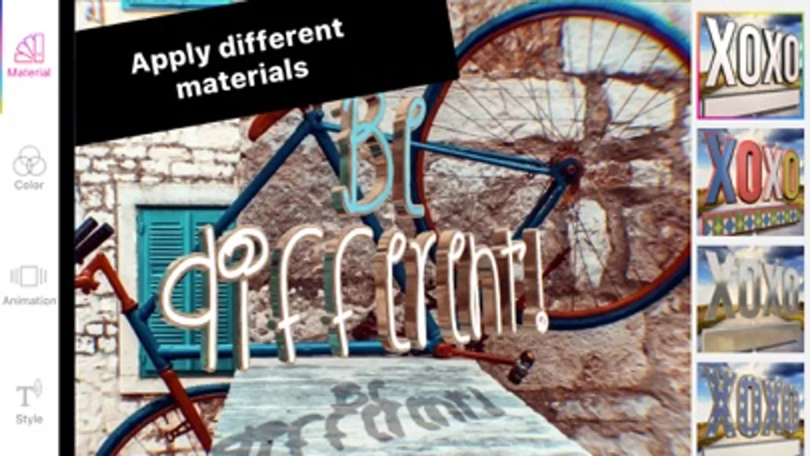 Create 4 second video loops or still images with 3D fonts and FX that normally take hours and 3D skills with just one tap.