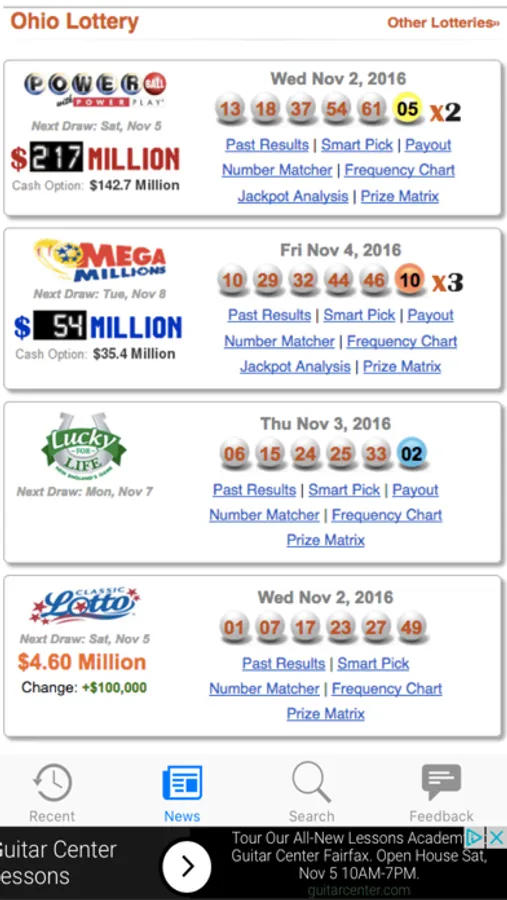 Get the winning lottery numbers for the Ohio Lottery (also known as the OH Lottery). Results for each game are updated every 5 minutes! You can save view game winners for each game, get frequency numbers, see the hot and cold numbers for each game, receive push notifications, or search past results! The app is very simple and easy to use. So if you are a lottery player - download this app now and get the winning numbers!