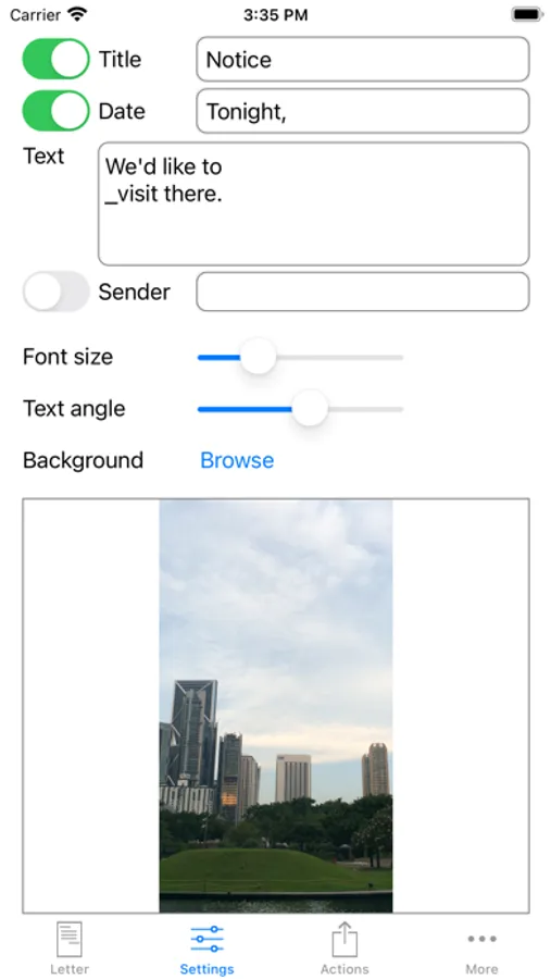 If you set a title, text, sender and choose your favorite background image, everybody must be fascinated.