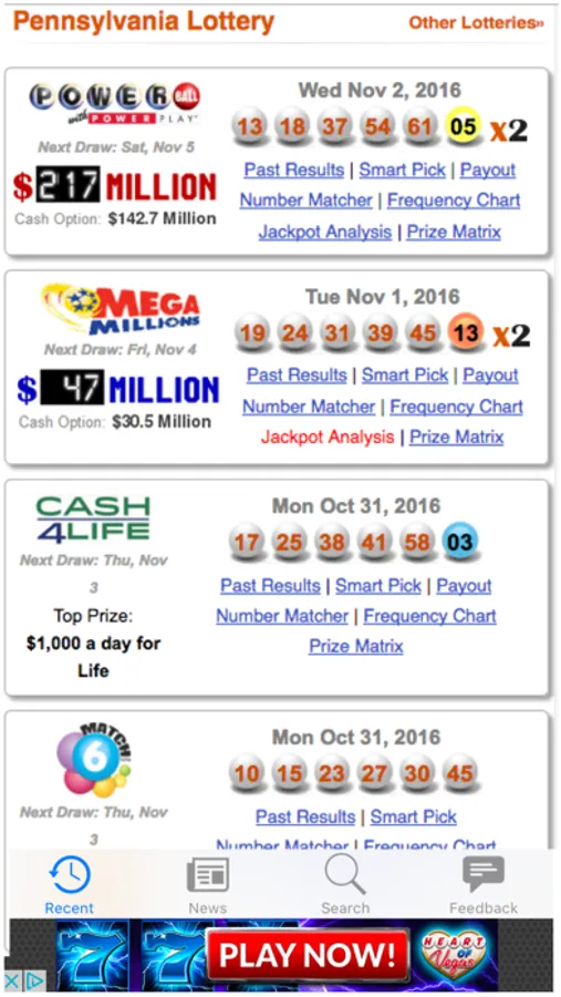 - Search past lottery results and specific dates