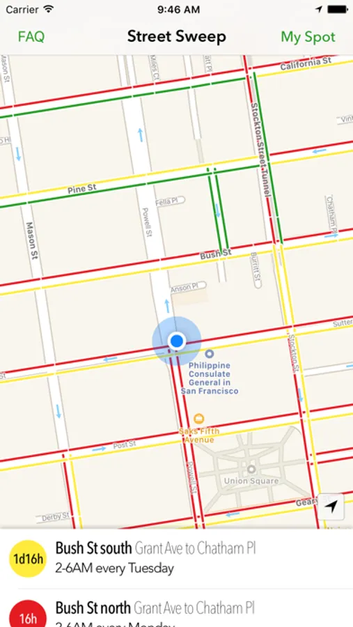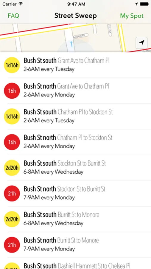 Street Sweep makes it easy to find the best parking spot so you don't have to move your car often for street sweeping.