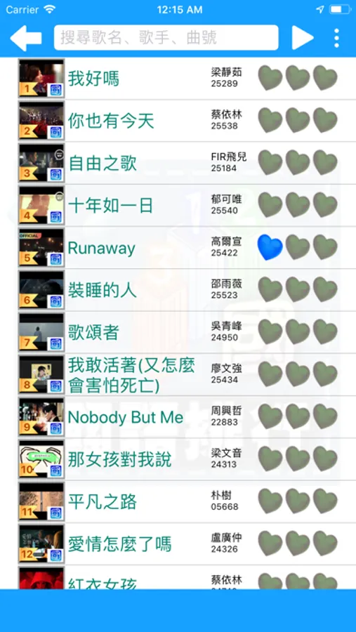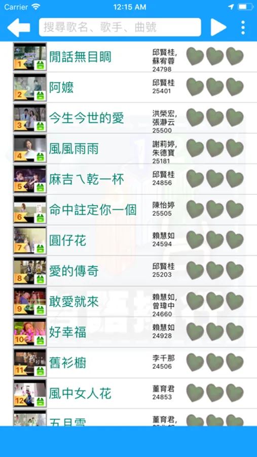 • 國語排行榜、台語排行榜